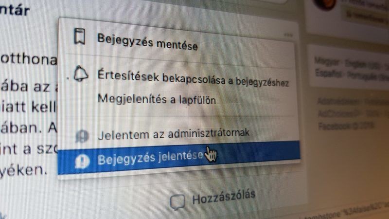 Facebook-felhasználóként már biztosan észrevettétek a bejegyzések jobb felső sarkában lévő három szürke pontot: erre klikkelve lehet egy idegesítő posztot elrejteni, az adott felhasználó követését leállítani, valamint itt található a „Bejegyzés jelentése" opció is. Bejelentéskor meg kell jelölnünk, hogy milyen típusú sértő tartalommal találkoztunk, és a lehetőségek között ott gyűlöletbeszéd. Ehhez hasonlóan az egyes kommenteket is lehet jelenteni, az ismerős három pontra kattintva, ami a szöveg mellett megjelenik.